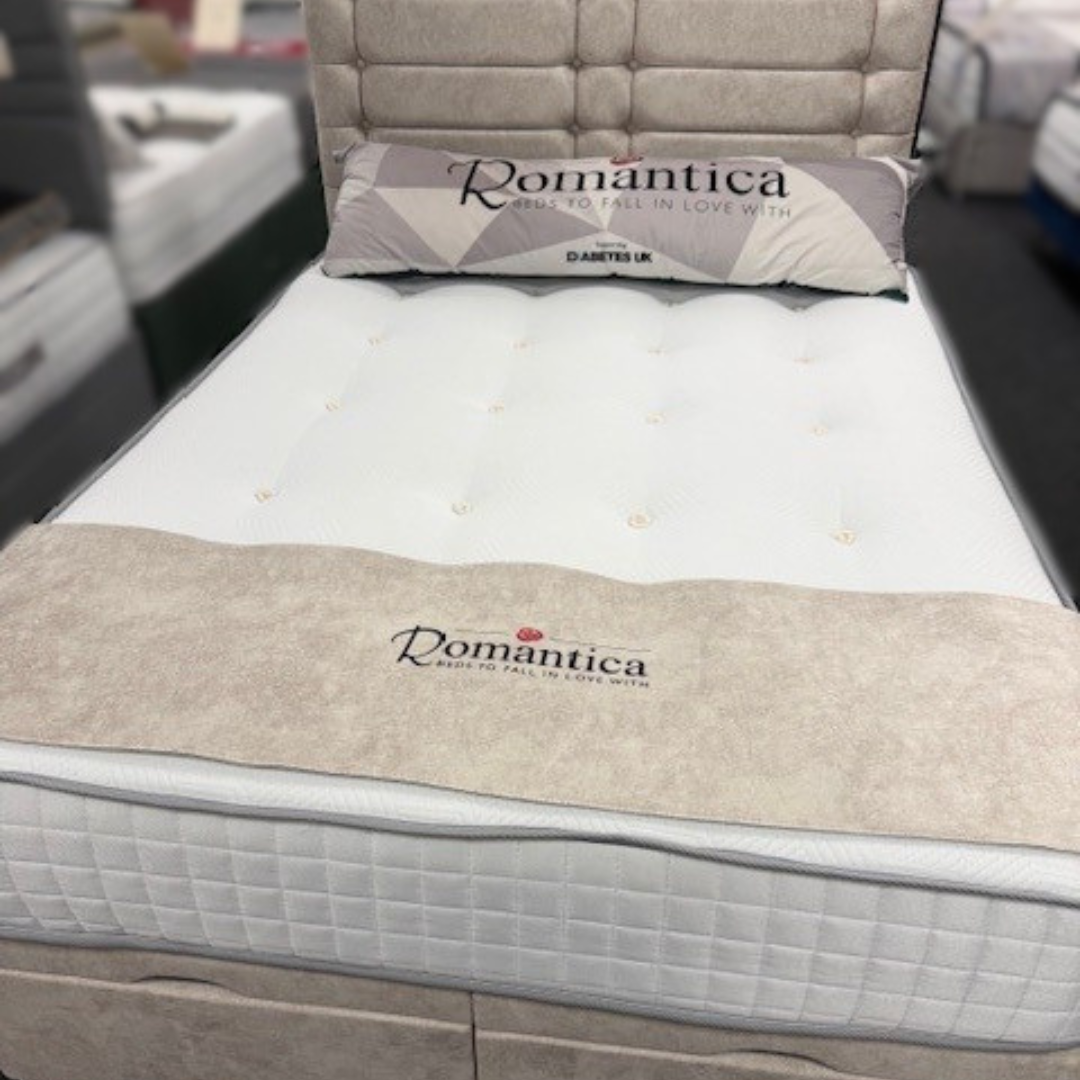 DOUBLE 2+2 DRAWER DIVAN SET INCLUDING FLOOR STANDING HEADBOARD